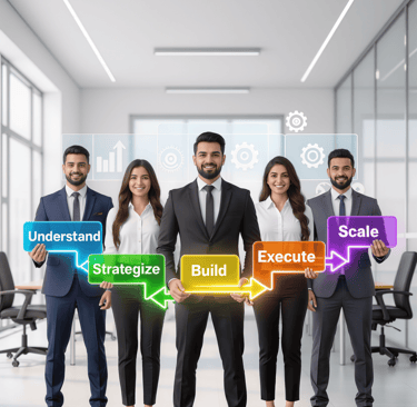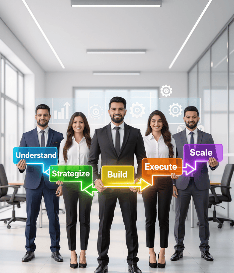 Hum sirf services provide nahi karte, hum app ke business ko samajhte hain, unki problems ko feel karte hain aur unke liye practical, result-oriented solutions build karte hain.