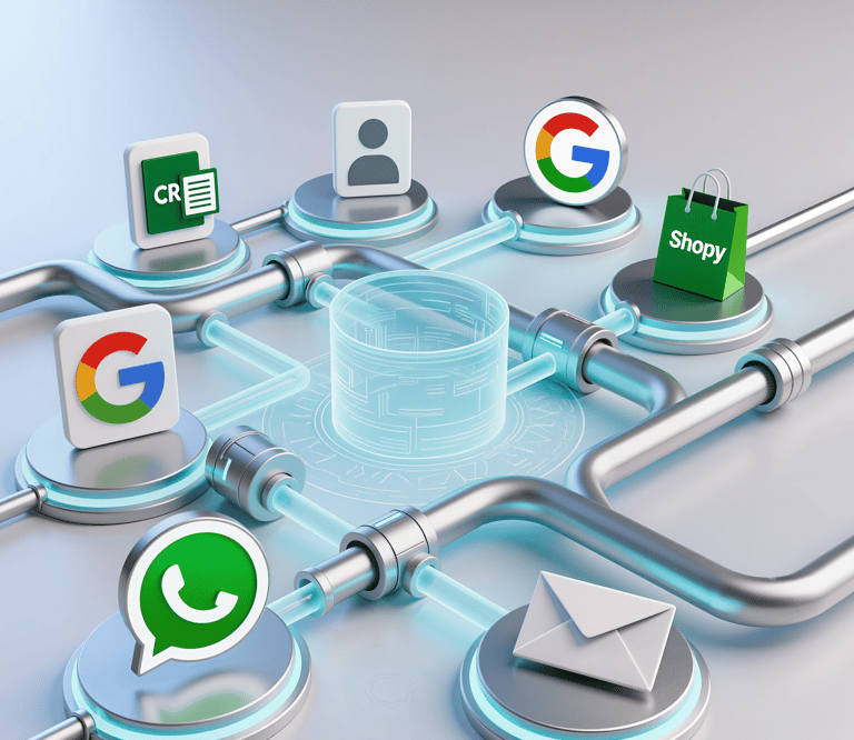 Website, WhatsApp, CRM, Emails, Google Sheets, Ads — sab alag chal rahe hote hain.