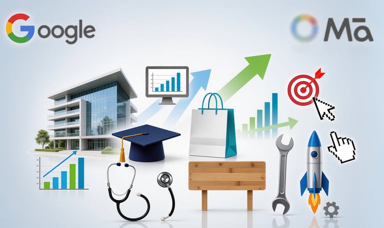 Performance Max Campaigns: Our AI-driven campaigns utilize Google’s full network — Search, Display, YouTube, Maps- to maximize performance automatically.