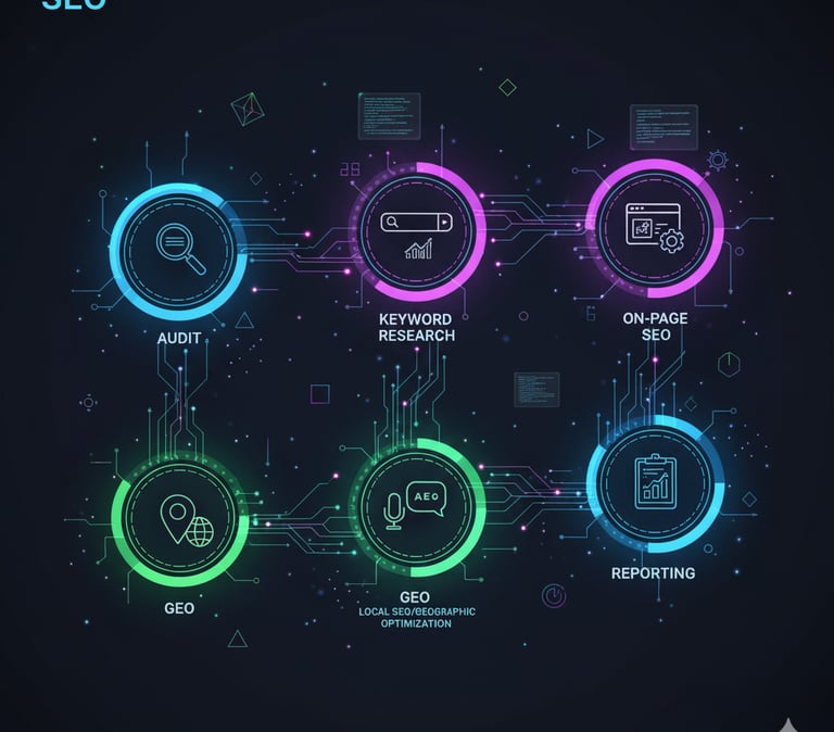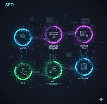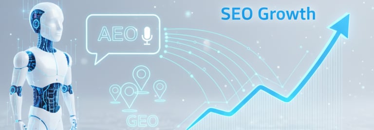 Our AI-powered SEO services and AEO optimization help you rank faster — while GEO SEO ensures customers near you can find you easily.