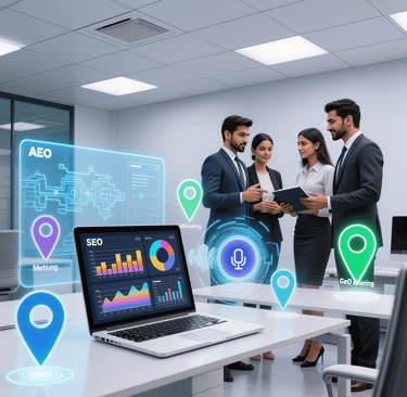 We integrate AI, AEO, and GEO optimization to make your brand more discoverable across search engines, voice assistants, and location-based searches.